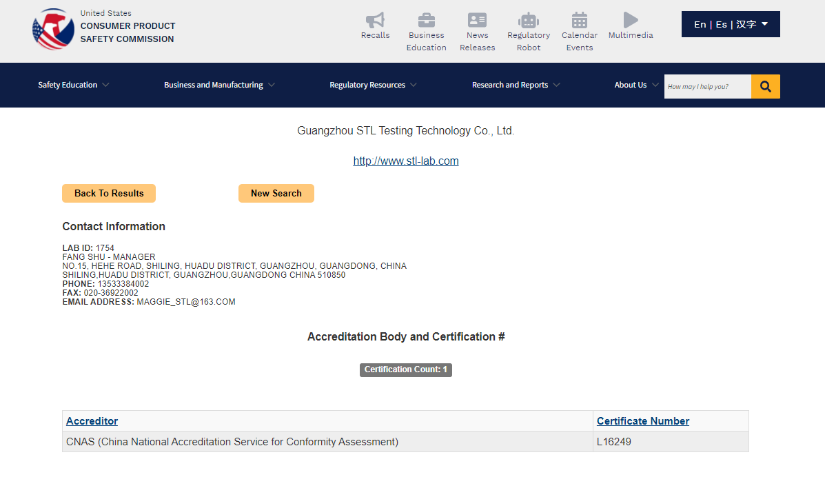 廣州市順通檢測科技有限公司自成立以來,在消費(fèi)品領(lǐng)域努力探索,持續(xù)引進(jìn)先進(jìn)的檢測儀器設(shè)備,2022年4月順利通過CNAS評(píng)審,榮獲中國合格評(píng)定國家認(rèn)可委員會(huì)頒發(fā)的“實(shí)驗(yàn)室認(rèn)可證書”,并向美國消費(fèi)品安全委員會(huì)申請,成功成為美國消費(fèi)品安全委員會(huì)CPSC認(rèn)可實(shí)驗(yàn)室。