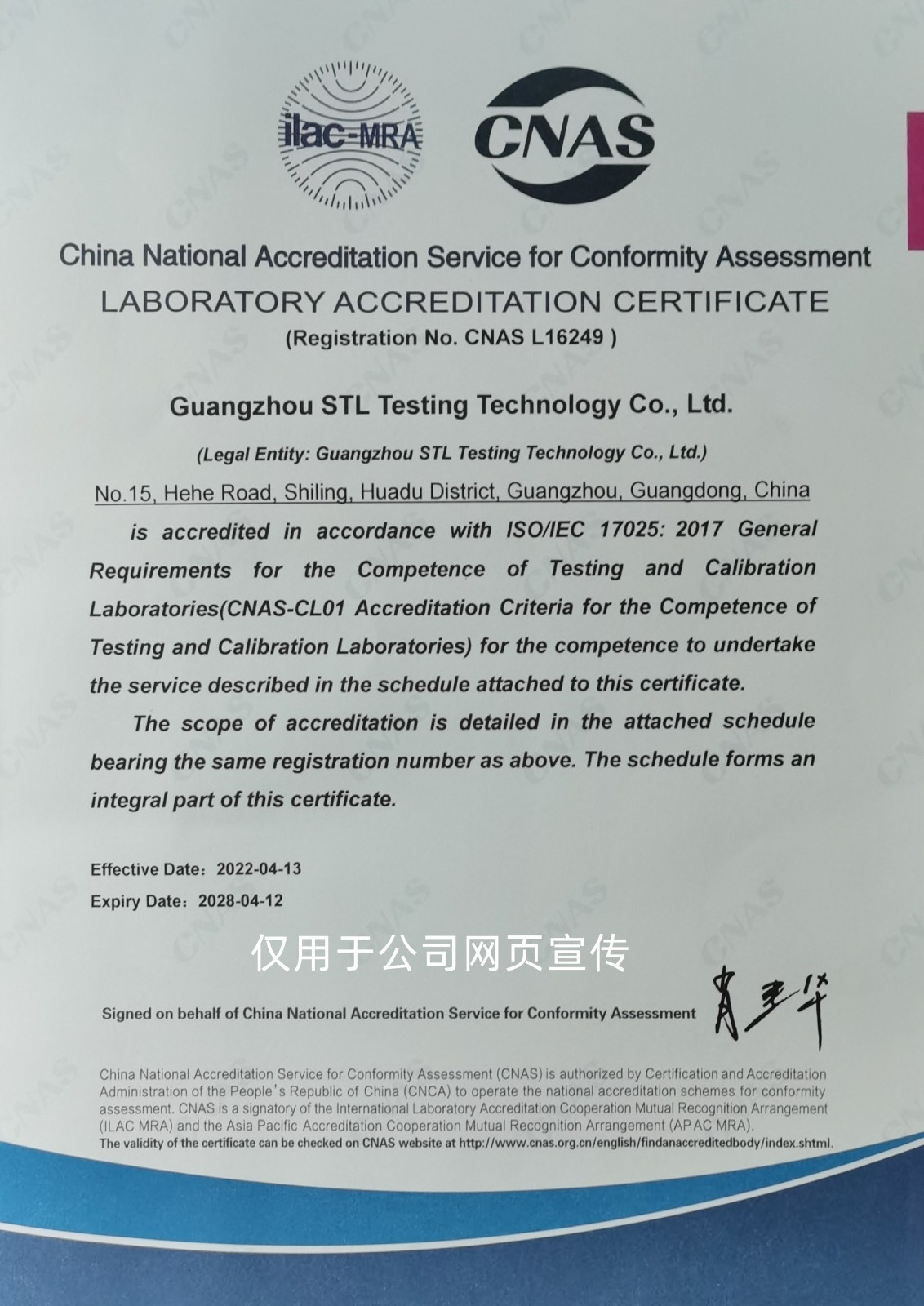 中國合格評(píng)定國家認(rèn)可委員會(huì)實(shí)驗(yàn)室認(rèn)可證書